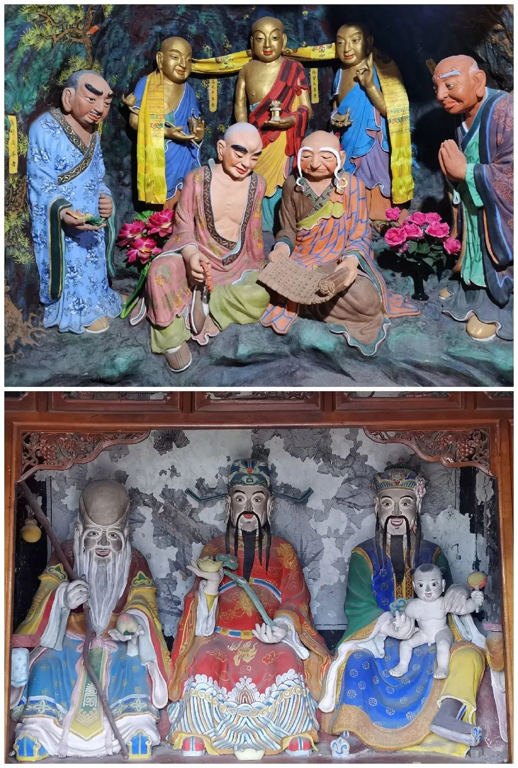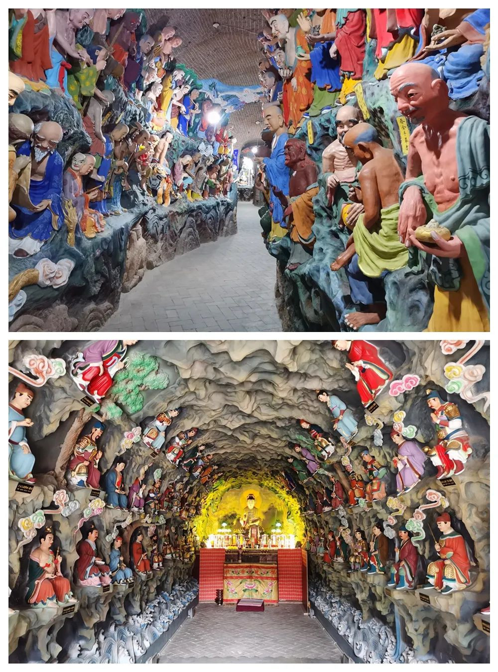 山上最让人震撼的景观是千佛洞,洞内有佛、菩萨、罗汉等雕塑八百余尊,造像奇异,神态逼真,还有绘制精美的佛教故事壁画,包罗万象,让人如临美轮美奂的佛国世界。