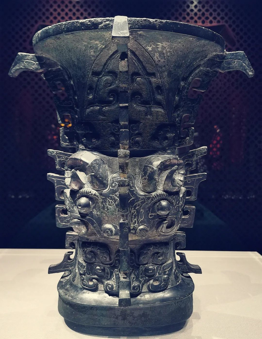 尊是流行于商代和西周的盛酒器,春秋战国以后逐渐消失。何尊通高39厘米,是西周时期考古发现铜尊里最大的一件,代表了西周早期青铜器铸造的最高水平。其对称布局、动静呼应、主次分明、空间流转等装饰理念至今仍在使用。何尊上的兽面纹为饕餮,有学者认为青铜器上纹饰这种凶恶动物的目的是为了戒贪。