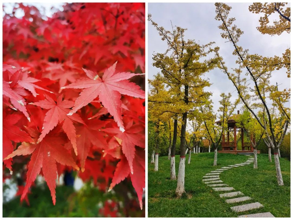 大像山下是大像山公园,由祭坛、崇文园、尚武园等建筑群组成,围湖而建,众多雕塑和仿古建筑体现了甘谷悠久的历史,深秋的红枫叶和黄银杏点缀湖畔,靓丽多彩。