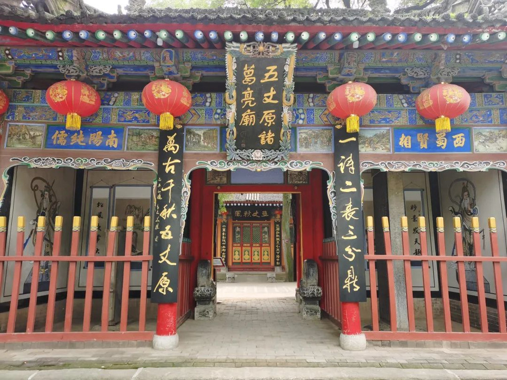 为纪念鞠躬尽瘁、死而后已的诸葛亮,后人于元至元初年在五丈原上建庙,历经明、清多次修葺,现存庙宇布局严谨,气宇轩昂,古朴典雅,庙内碑石林立,特别是镶嵌于献殿两侧的37块岳飞书诸葛亮前后《出师表》石刻,笔法雄健,大气磅礴,堪称书法艺术珍品。