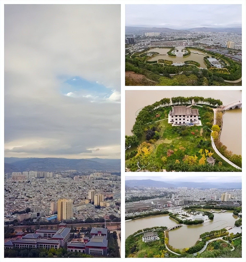 (大像山上俯瞰大像山公园、远眺甘谷县城)