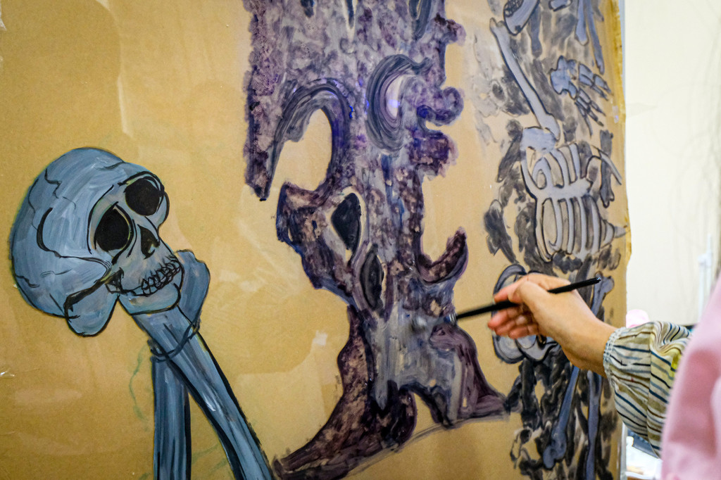 着色的时候不能用水彩、国画颜料,一定要用矿物质颜料,这样色彩才能更持久、通透。