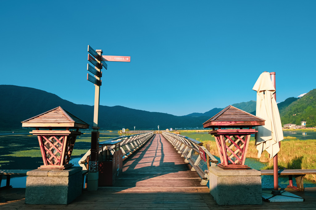 在腾冲,不只有绚烂银杏和古镇古韵,还有让人流连忘返的山水风光。腾冲的北海湿地是一片高原火山堰塞湖,云南省唯一国家湿地保护区,湛蓝的湖水仿佛宝石般沉静清澈。