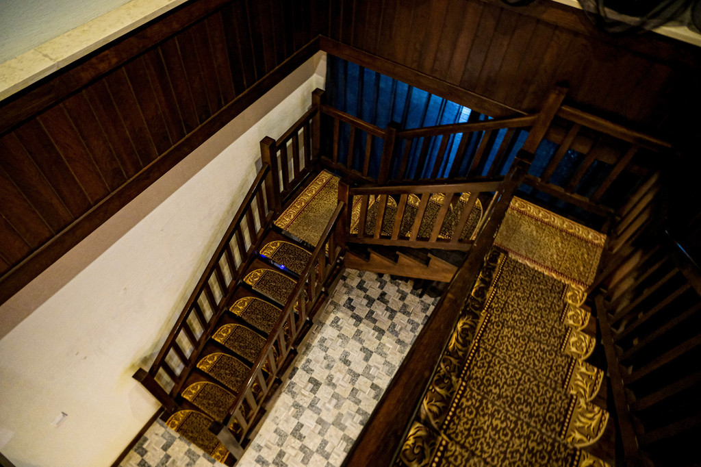 餐厅内部结构较为复杂,竹楼的上下两层被分为包间和过道餐桌。