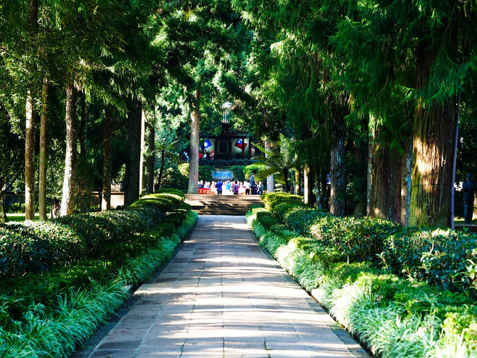 在陈列馆之侧,有一座巨大的墓园,这就是为了纪念收复 腾冲 阵亡的远征英烈的国殇墓园。其名“国殇”取其全国人民悲痛之意,意为味铭记历史,缅怀英烈。此墓园是当地“抗战第一县长”李根源倡导下修建的,根据 南京 的陵园布局而建造,其后方的墓园以“正三角形”的形态,随着山势自下而上依次葬着英勇就义的英烈,越往上英烈的官衔级别越高。 腾冲 是世界瞩目的英雄之城,滇西抗战博物馆不仅是爱国主义教育基地,更是国家级文物保护单位,值得一去。