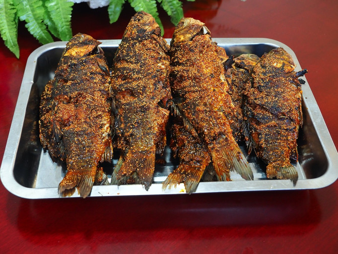 北海 特色烤鱼: 北海 湿地水草丰茂,盛产河鲜。在每一条鲫鱼腹塞满香菜,在把鱼划成花刀,抹上遇难独有的野芝麻,然后烘烤,刷上酱汁,美味可口。