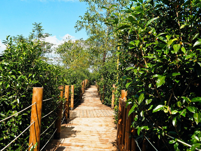 踏入高黎贡山茶博园,绿眼葱翠,清香怡人。郁郁葱葱的茶园,使人神清气爽,同其他地区的茶园不同的是这里的茶树都较为高大,茶树之间的间隔距离更为宽阔。顺着纵横交错的茶园观光步道前行,竟然发现了一处茶畦美宿。