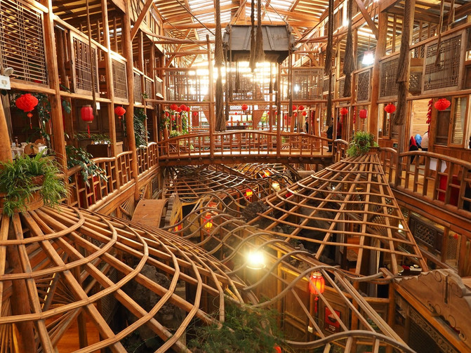 山清水秀的 云南腾冲 郊外,有一家宛如世外 桃源 般的美食餐厅,整个店面都用木艺制品装潢。木门、木窗、木楼、木梯、木桌、木凳……而且楼梯还是盘旋而上,每一间厅堂、包间的顶部,都有独特的木艺吊顶,木楼外围绿荫环绕,水流潺潺,又有几分 江南 韵味。这就是 腾冲 当地,远近闻名的近水阁。