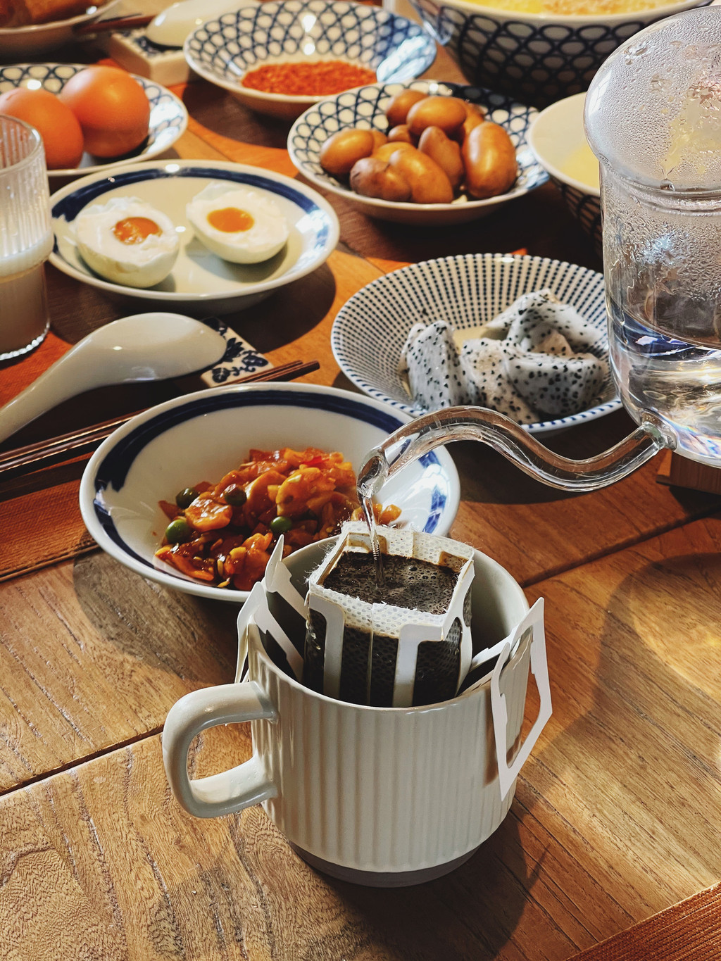 酒店:腾冲雅上慕云归温泉酒店 推荐指数:五颗星 酒店离寸氏宗祠不远,我们是晚上8点半飞机到达腾冲,刚刚落地开机,酒店的小冯信息就进来了,告诉我们他已经在门口等着啦,回酒店的路上问我们想吃些什么,店长花花在酒店里准备,我们到了就可以吃了,很是体贴。酒店风格是简约的日式庭院,房间里面有碳酸温泉泡池,外面有无边游泳池,我们一共三个房间,每个房间都很巴适,房间配备全自动马桶,洗浴一套也体现了主人的细致,巨大的果篮、高山红茶、香薰、手冲挂耳咖啡、瑜伽垫,简直把能想到的都给准备的妥妥滴。