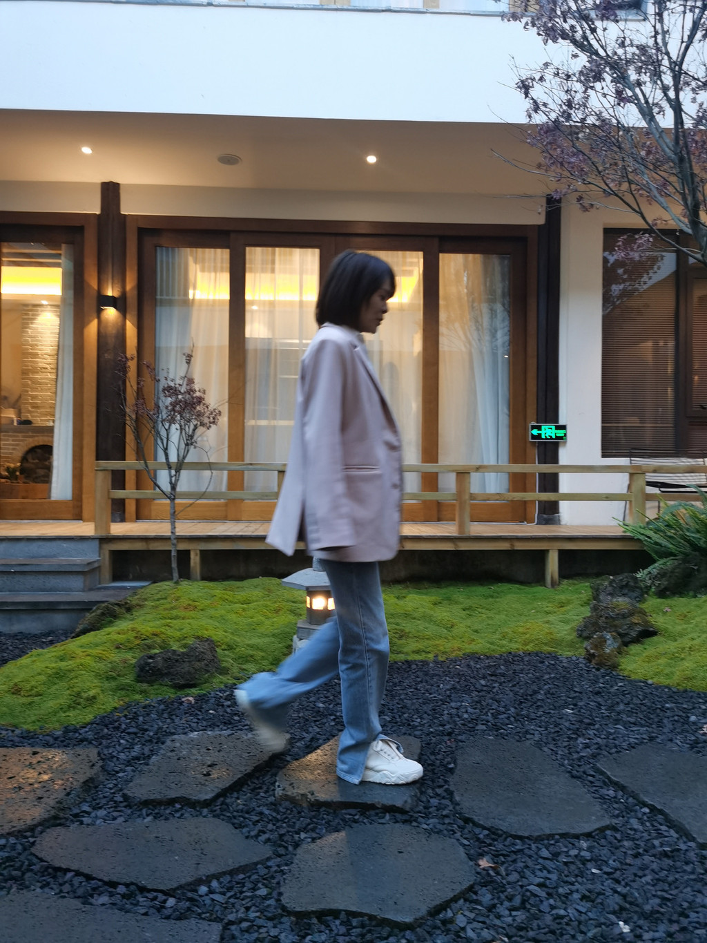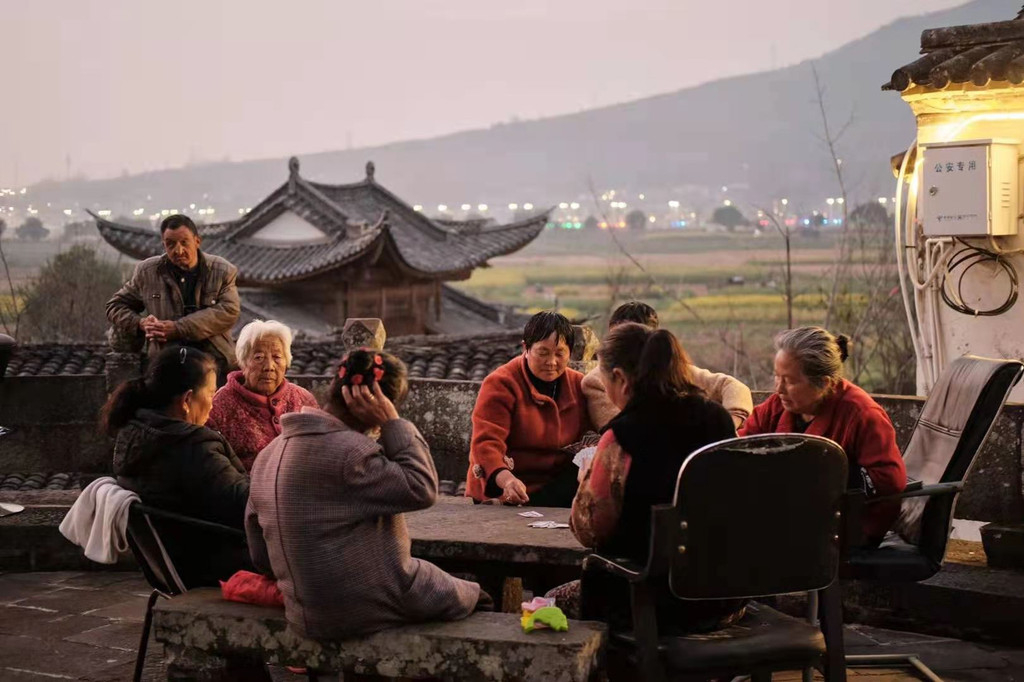 河边散步的人大多数是本地人,行走时不为周边的事物所动。坐在石凳上打牌的老人笑着问我们会不会打她们正在打的那种牌。天色是浅浅的紫红,像是挂上了薄纱。