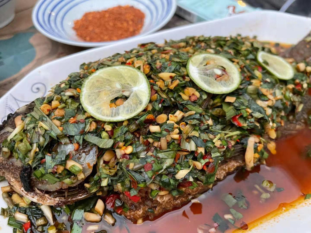 我们人多,怕不够吃,就在旁边一家餐厅“有芬”餐厅,据说是本地人经常去的一家腾冲本地菜馆,点了鱼和鸡汤,也很快送过来了,价格实惠,份量十足。