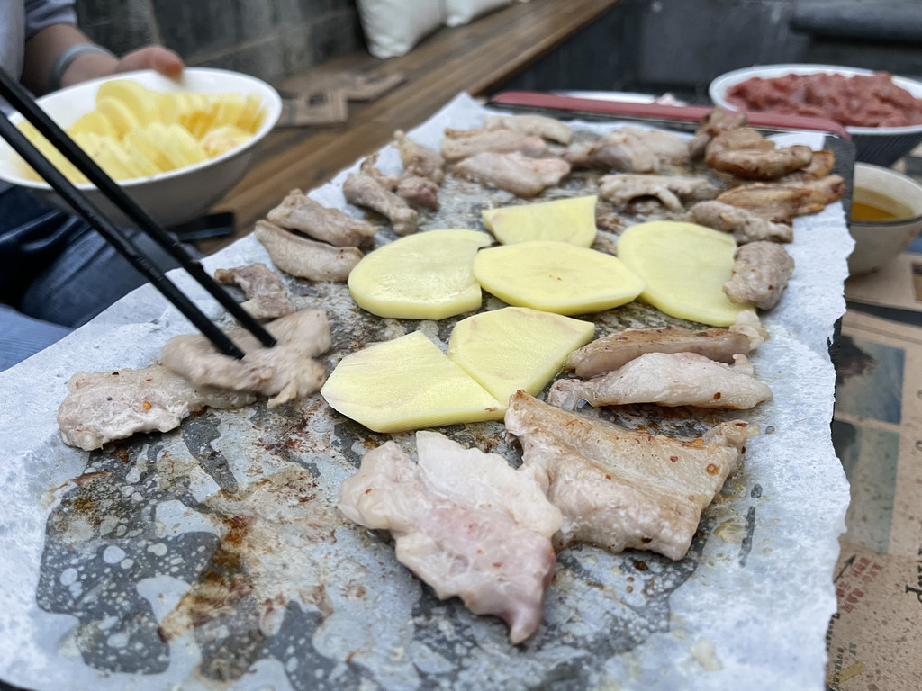 臭豆腐罐罐米线 推荐指数 :五颗星 这个是我们在来时的飞机上就约定了,一定要去吃的,没有固定的指定店家,就都很好,不会踩雷的那种,随便路上找一家,都是那个味儿。臭豆腐和各种食材在腾冲特有的土陶罐里经过高温的洗礼,端到你的面前,还在沸腾着,吃一口臭豆腐,口感细腻混合着蔬菜肉类的香气,吃过很久都回味绵长。