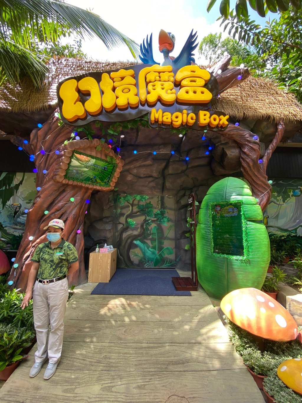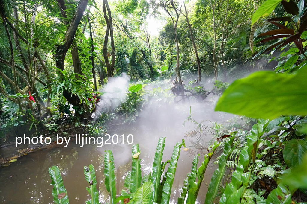 在这里,热带景观被微缩成一幅幅美丽的风景图,一些叫不出名字的奇花异草,极具特色的茅草屋,长藤下的树桌椅等分布其间。