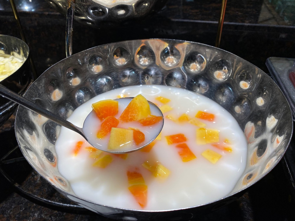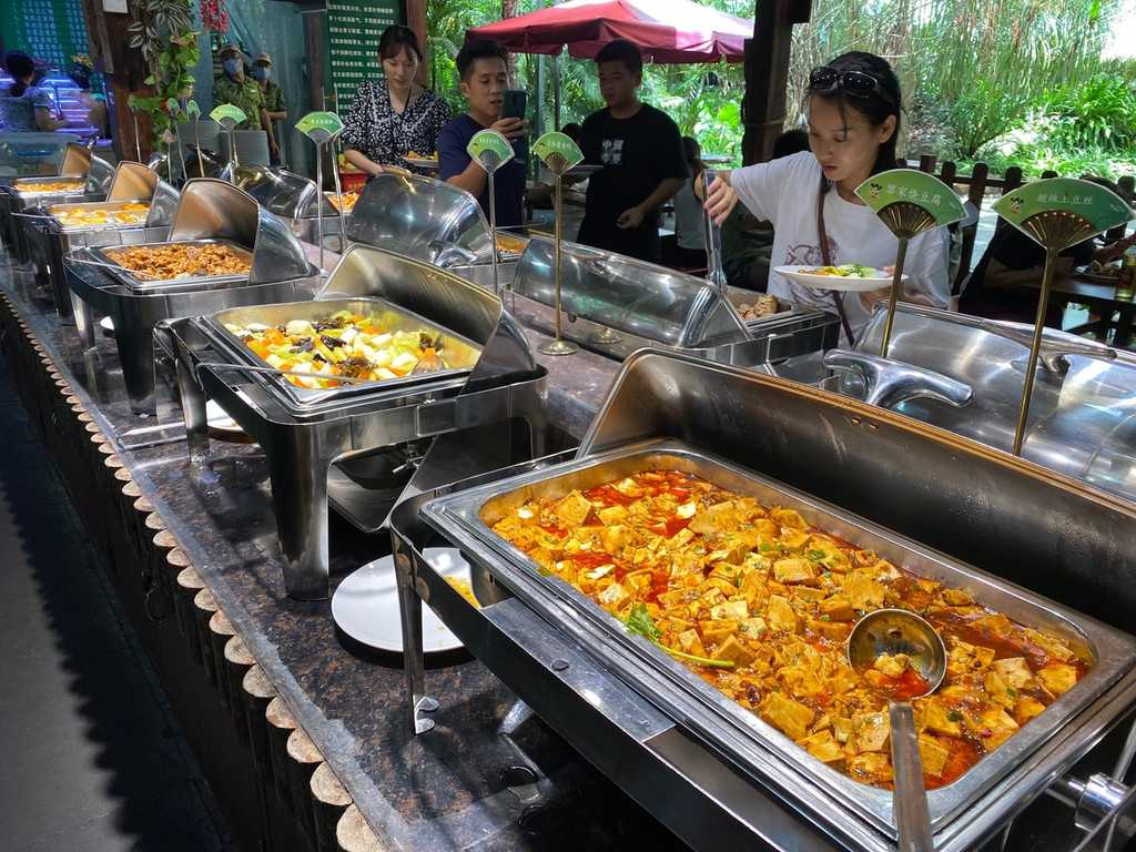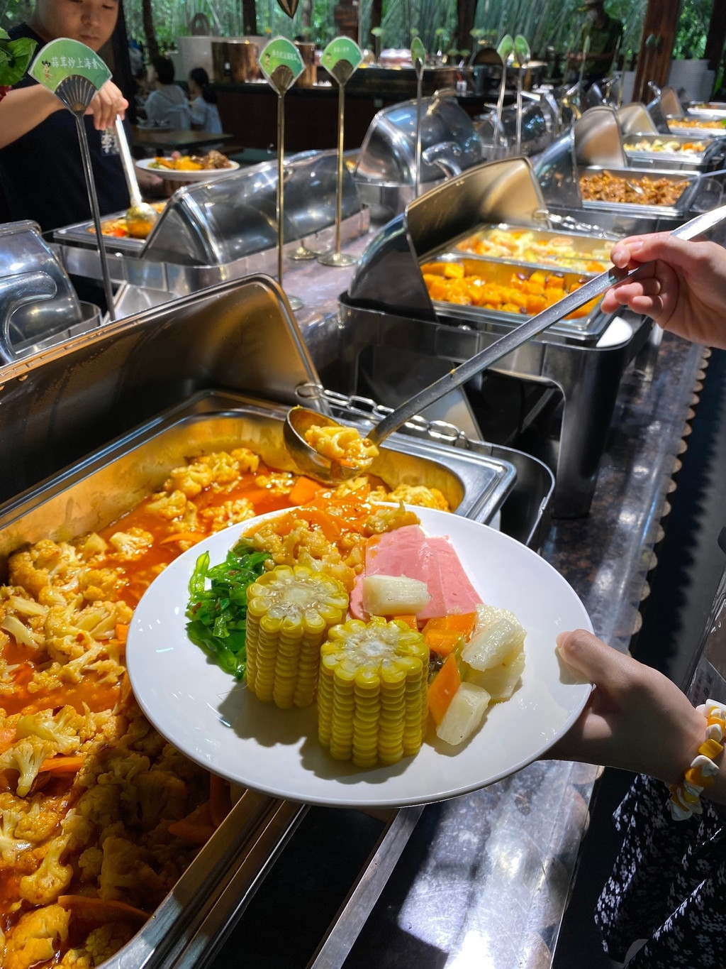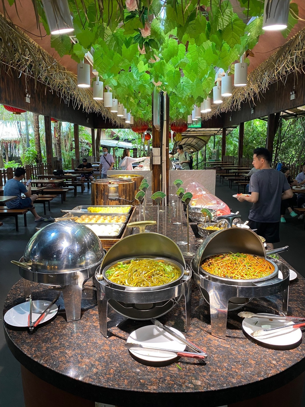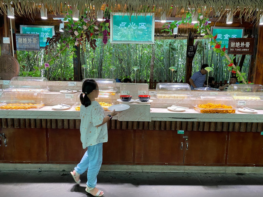因为景区主打自然,所以饮食也主打养生,做法主要以蒸为主,尽量不流失食材的营养价值,品质还是不错的。景区虽然也有几个餐厅,但就游玩的方便程度来说,这个餐厅是个承上启下的地方。可选比较多,除了炒菜,面食、清补凉、五谷杂粮。DIY清补凉挺好吃,还有椰奶木瓜!女生都爱吃吧。