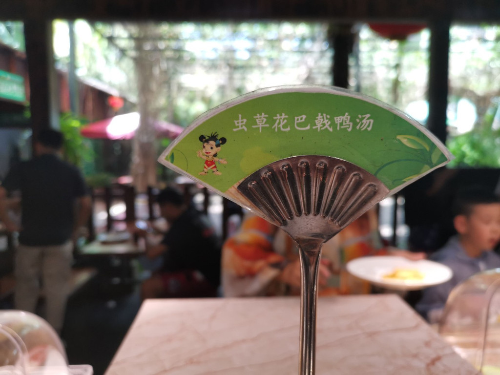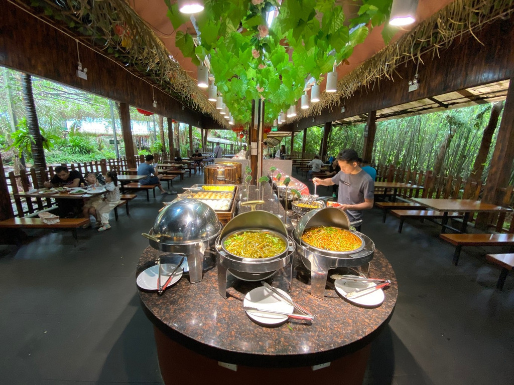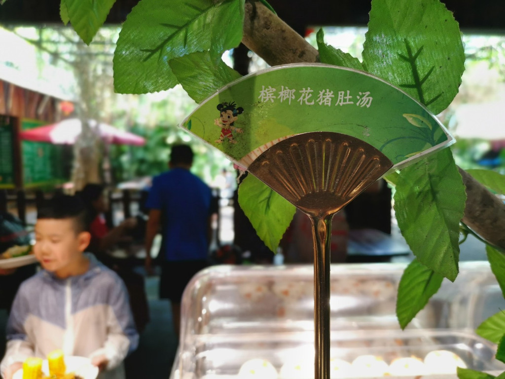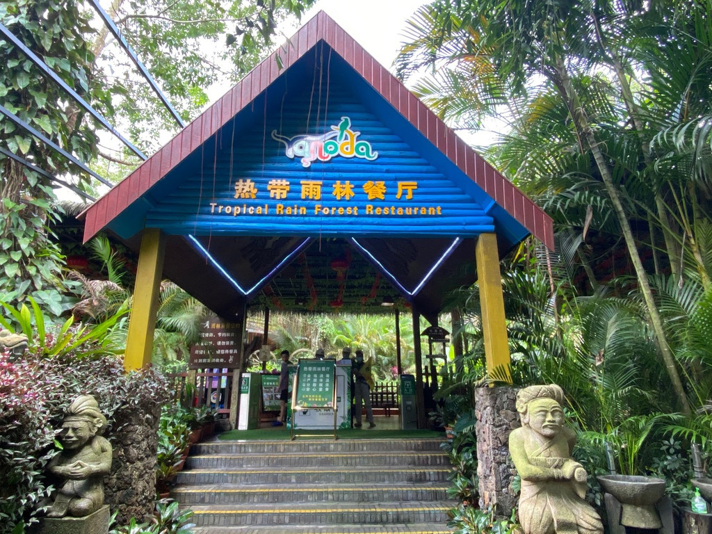 【热带雨林餐厅】就在景区里面的核心位置,是个养生药膳自助餐厅,里面很大,座位很多。