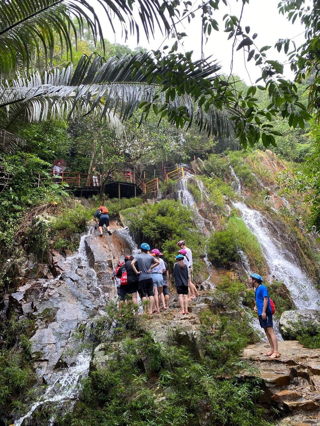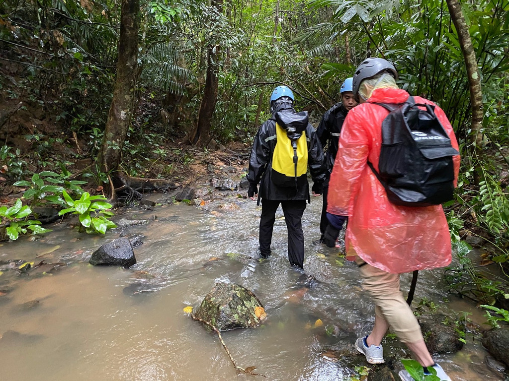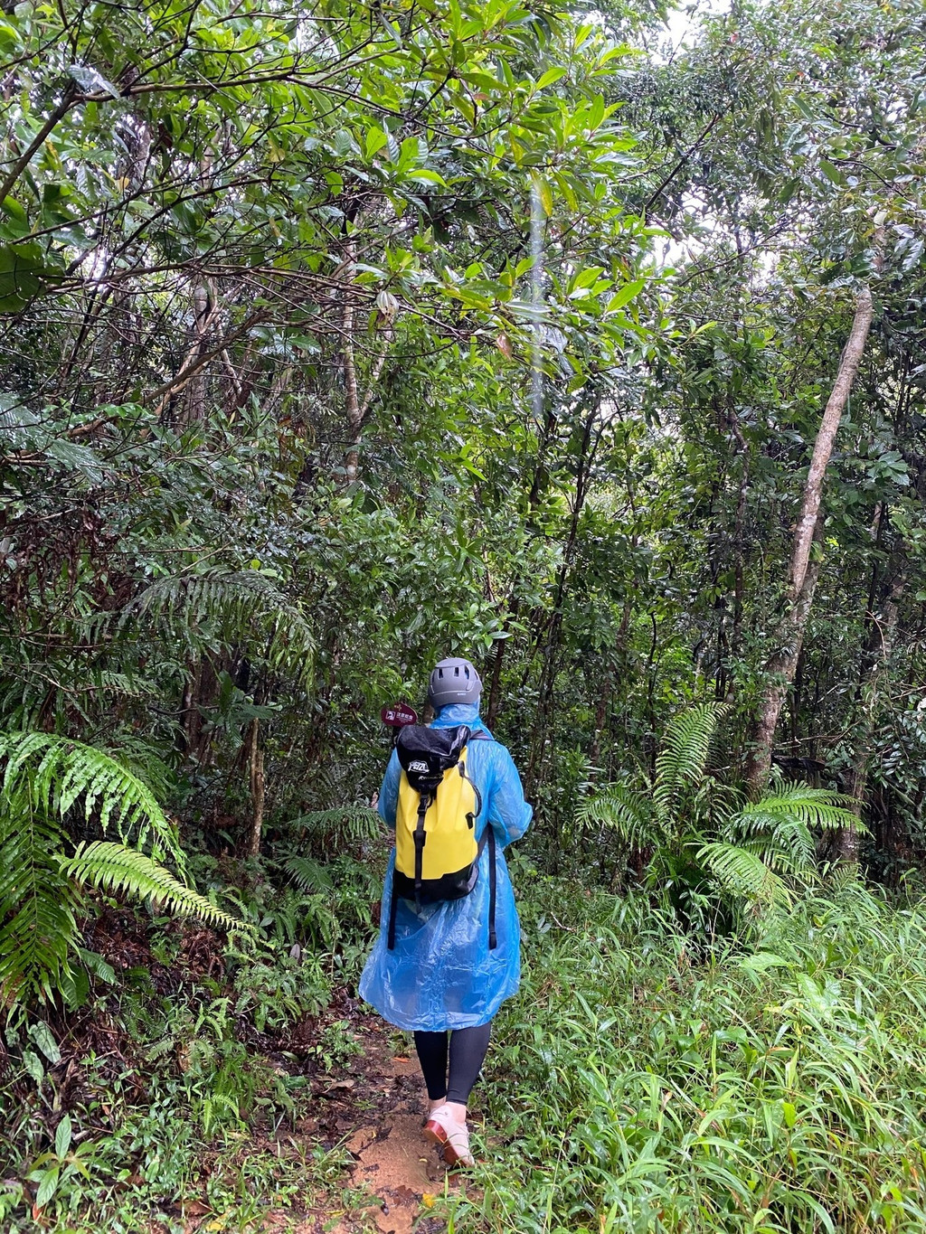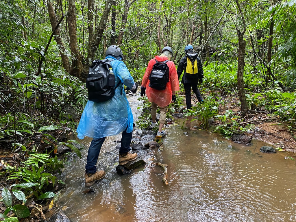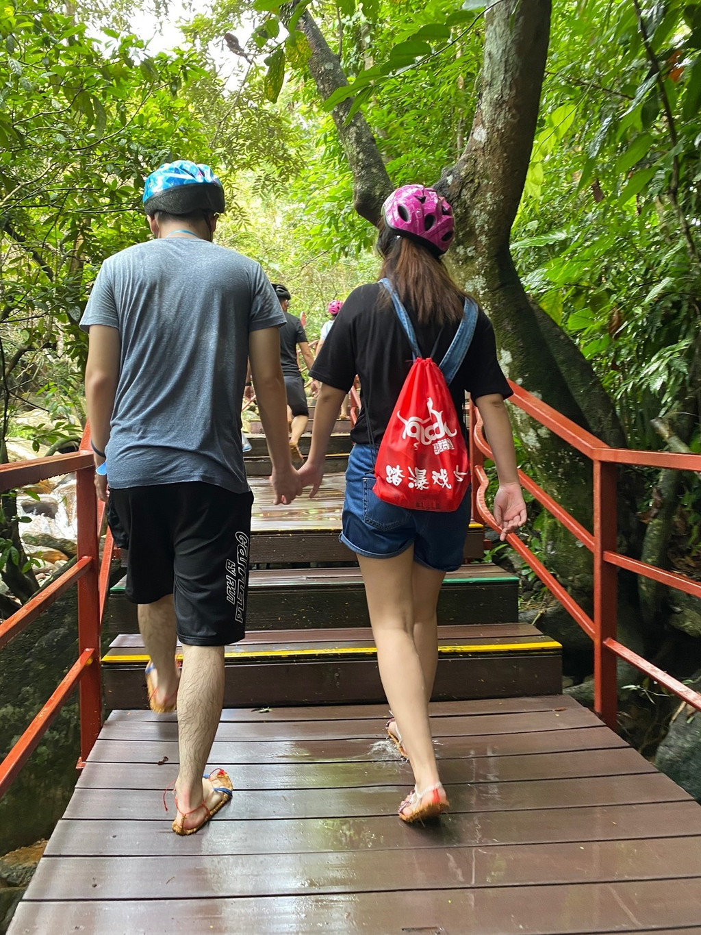 一定穿能溯溪的防滑运动鞋,因为会有很多水路、全程泥泞路段。(也可现场租用购买雨林学校的鞋子)