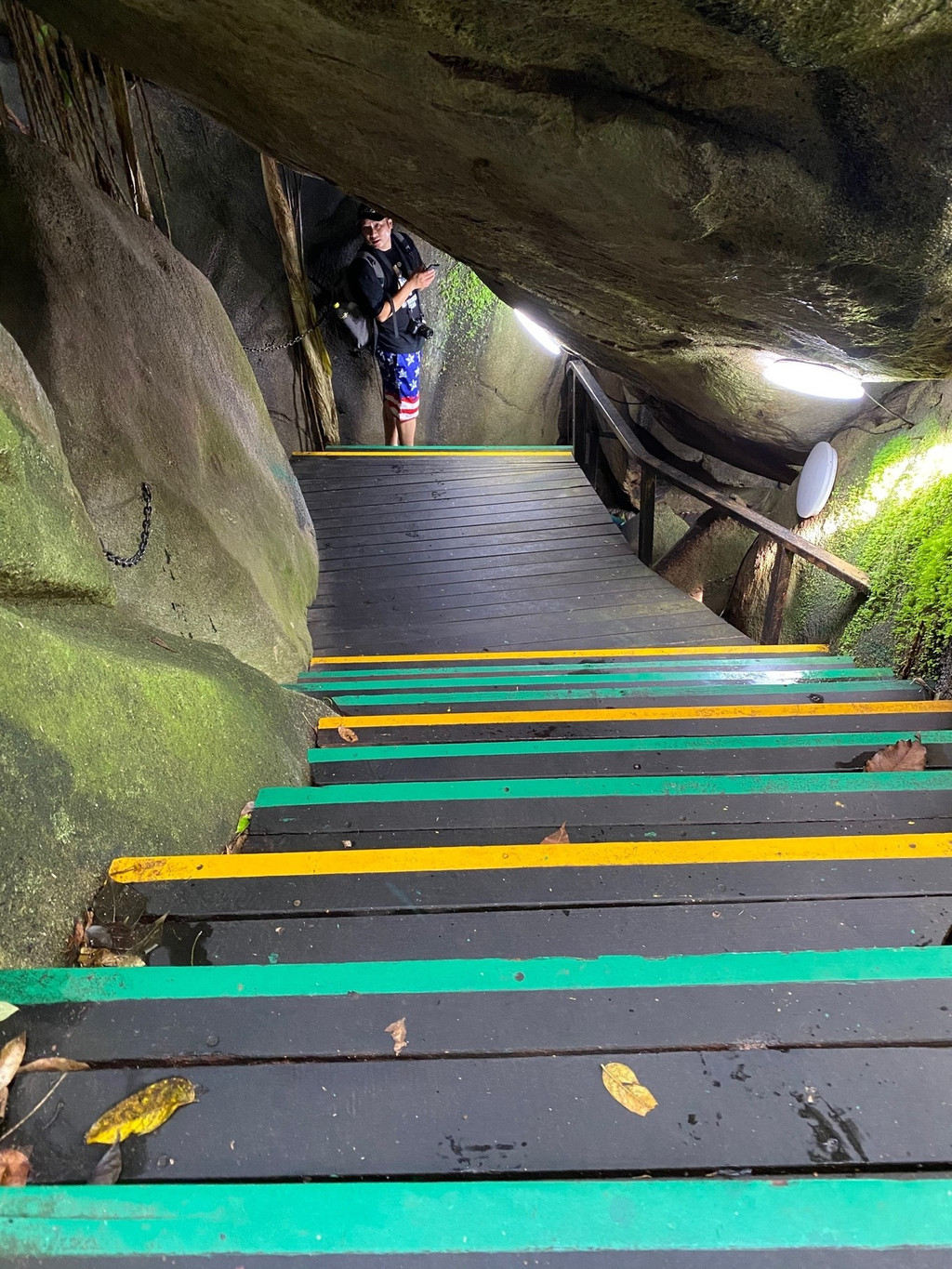 一定穿长袖长裤,因为雨林里蚊虫太多,免得浑身都是包,树木绿植都是原生态状态,容易被划伤。
