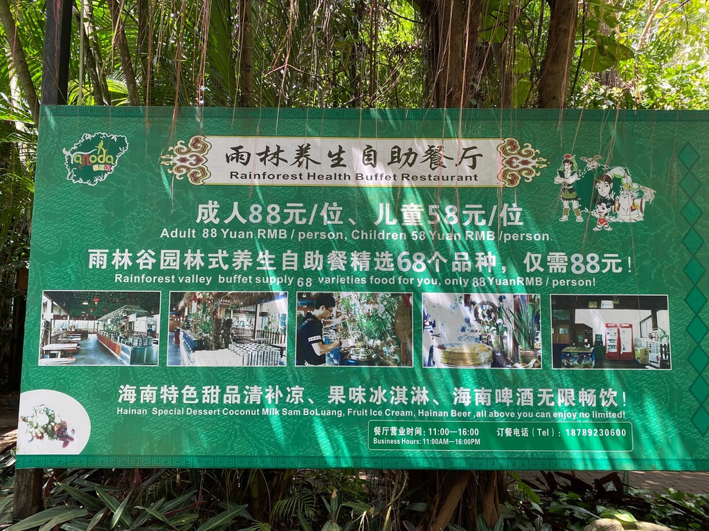 用餐:可选择景区内的【养生自助餐厅】、【雨林1号酒店中餐厅】、【黎家菜馆】
