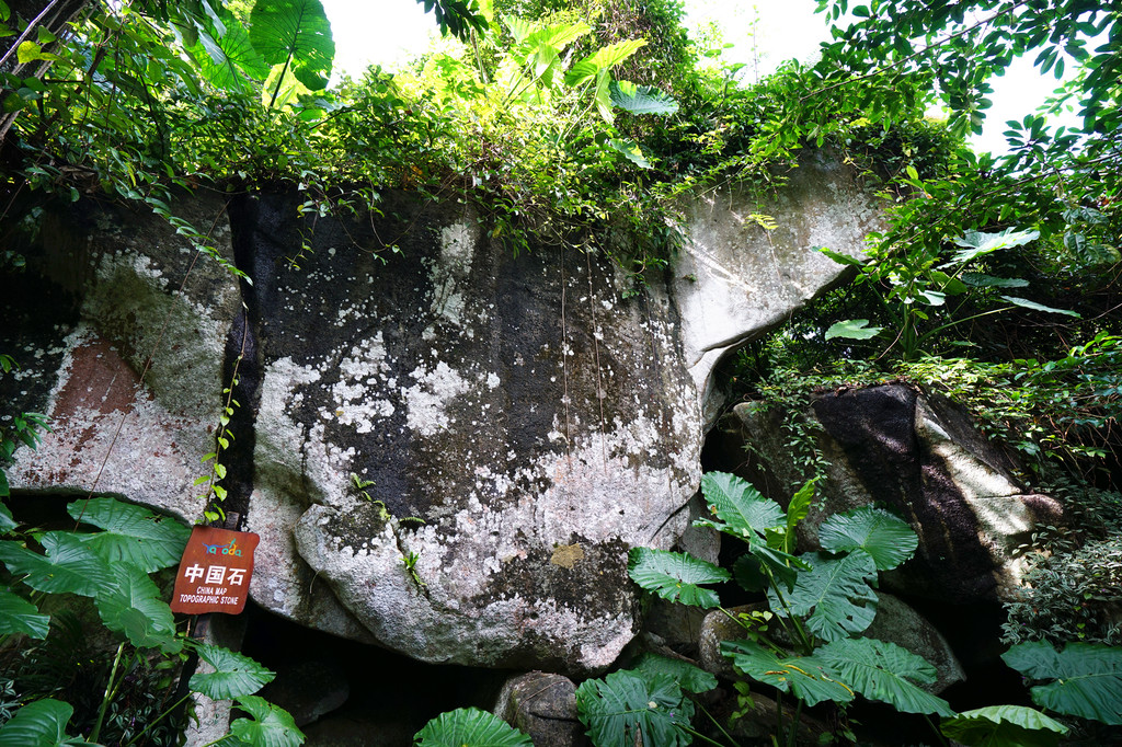 在呀诺达雨林谷腹地有一块天然巨石,神似 中国 的版图,上面自然形成有 黑龙江 、 西藏 和 海南 岛的地域轮廓,连 越南 和 日本 也清晰可见。