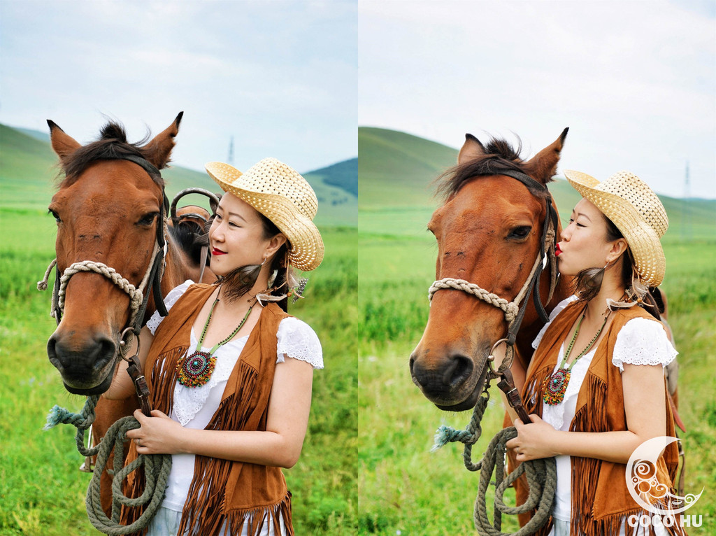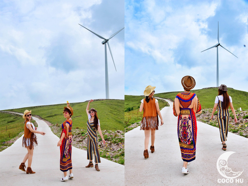 草原的魅力是总能吐露出生生不息的能量,像无尽的大海,使人豁达、宽广。和集美们在服装搭配上都做足功课,特意分配了短裤、长裤、长裙搭配,但主色系是大地色。流苏、条纹、波西米亚印花搭配,可甜可盐,牛仔草帽、小圆沿草帽和毛呢礼帽,岔开视觉,搭配各自服装,可说任何细节都在考虑之中。