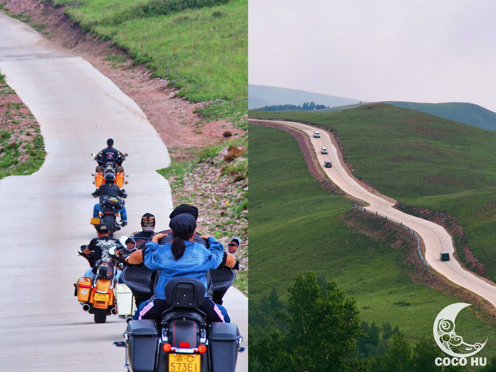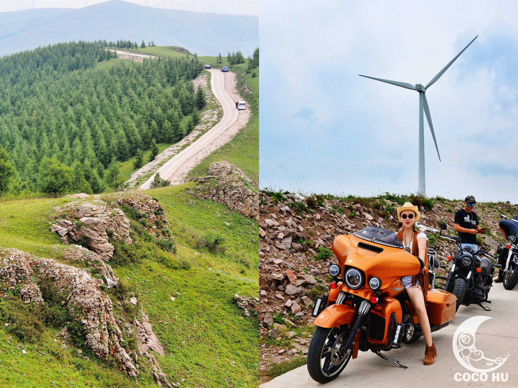 如果你运气好,还能像我们一样遇到如此酷的哈雷车队。遇到哈雷车队时,他们正准备走,我一个箭步冲到车上喊着求拍照,骑士们都停了下来,有的还在喊,“穿得这么搭,不拍都不行了。”看来机会总是留个有准备的人。