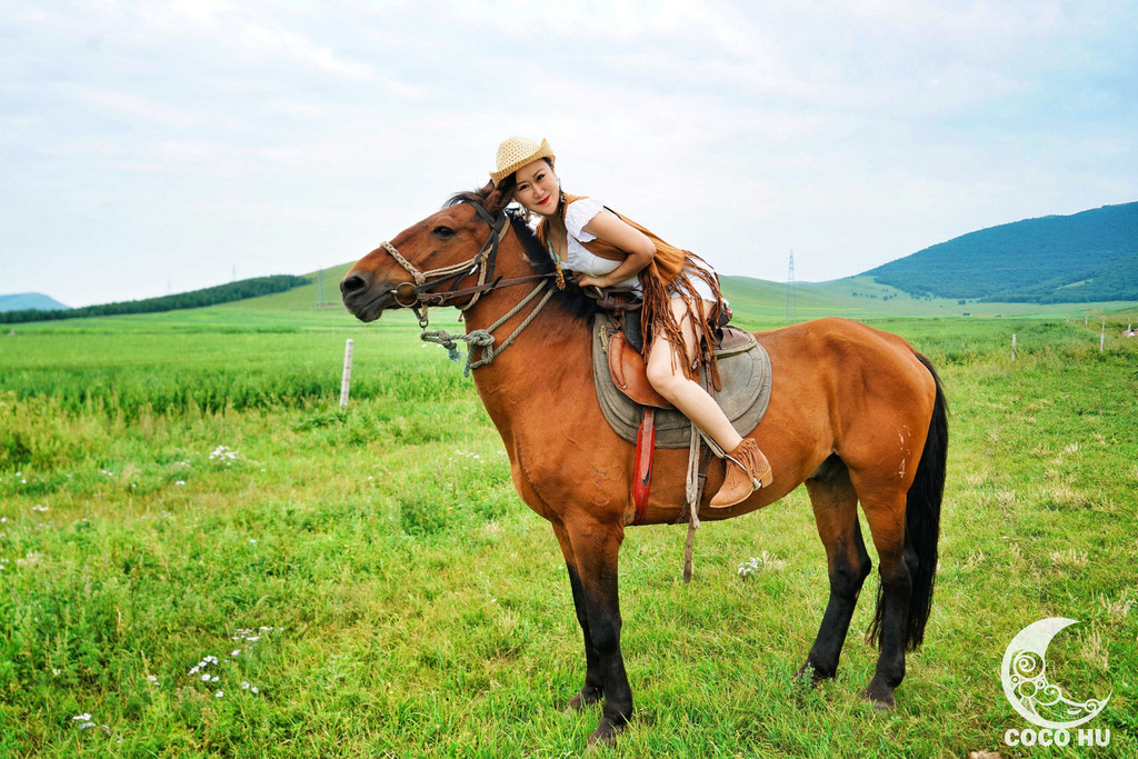 给自己设计了西部牛仔断背山的装扮来坝上旅拍,怎么能少了马。其实在距离千松坝车程五分钟的村庄里,便有配套餐厅、度假村、农家院,我们住的“天路驿站”,卫生条件和舒适度也合乎标准。