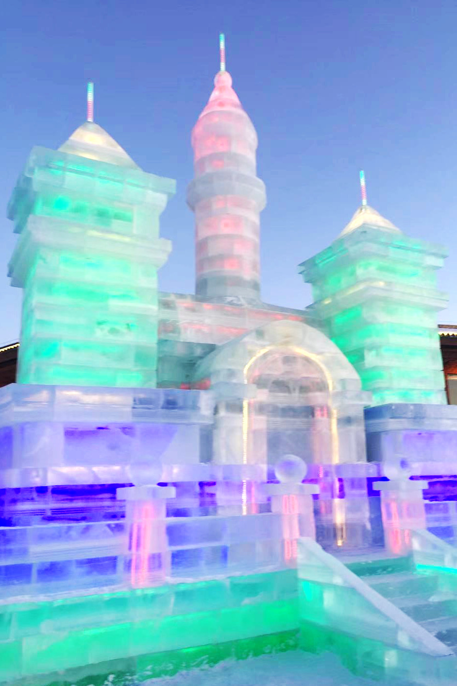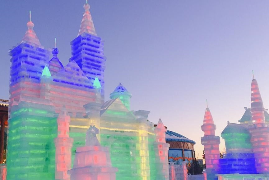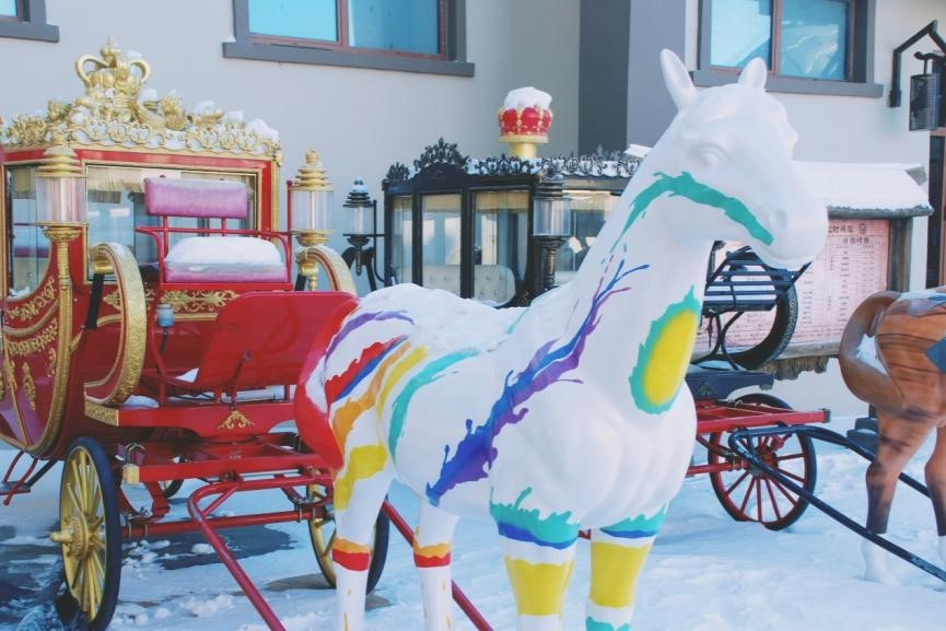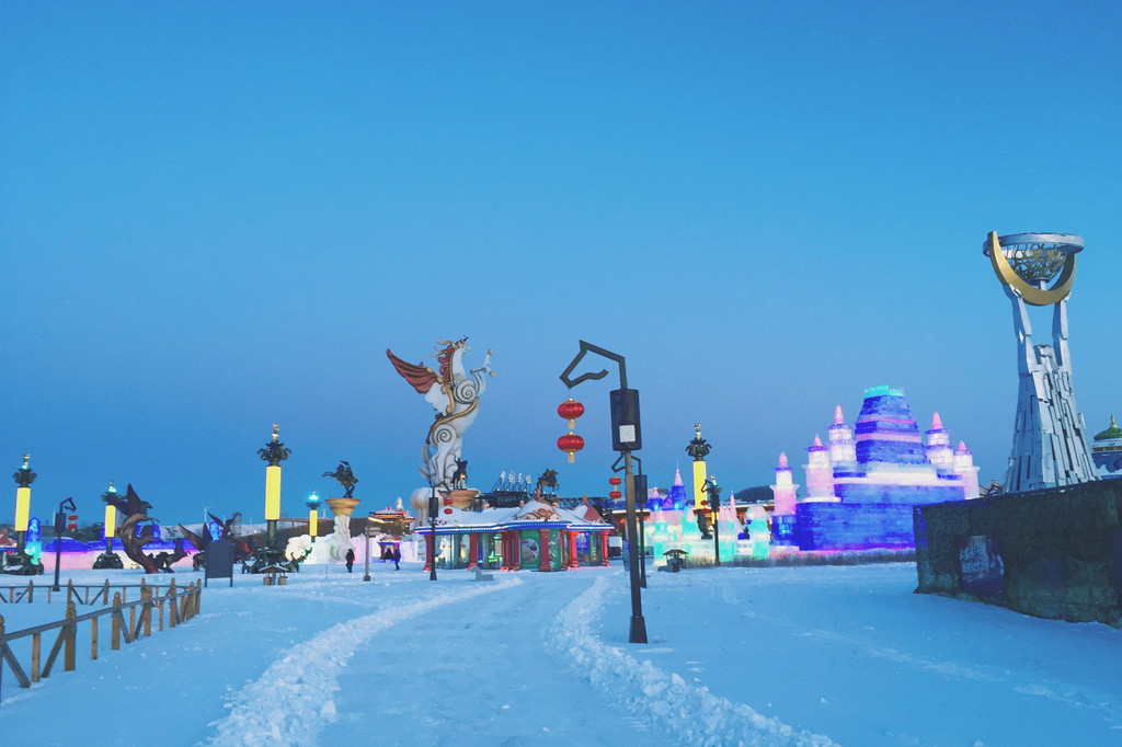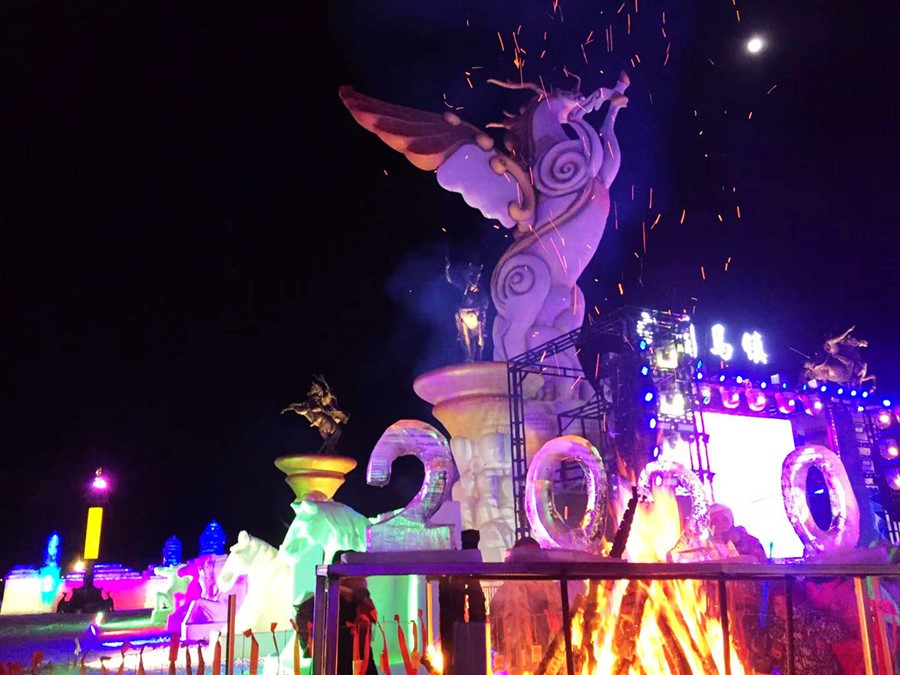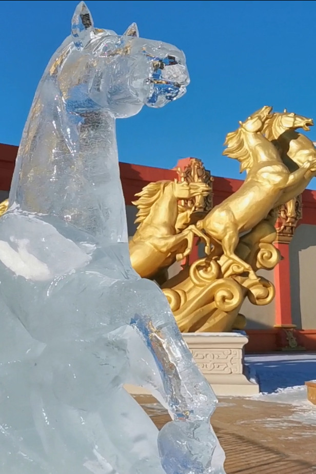 大型冰雪雕塑,晶莹剔透,纯白灵动,在阳光下熠熠生辉,惟妙惟肖。白天光彩夺目,夜间绚丽多彩,美得让人陶醉,大部分都是以马维主题,拍一组绝对刷爆朋友圈。