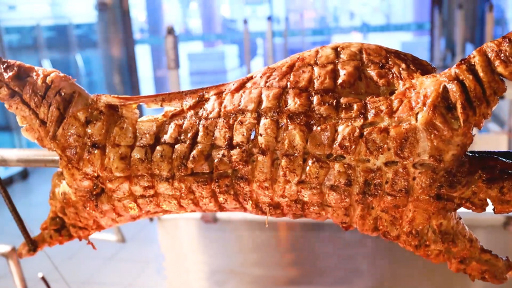 冬季来坝上,当然要吃滋补的烤全羊啦!中国马镇旅游度假区美食街中第一打卡地,天下第一烤羊餐厅,独创特色烤全羊,一羊六吃!酥、脆、鲜、嫩、美味的烤全羊,太爽啦!