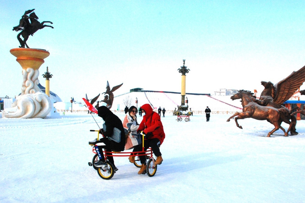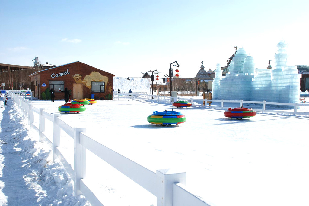 免费戏雪项目包括:冰车、漂移车、悠波球、海豚助滑器、冰陀螺、雪地龙舟、转转车、龟兔赛跑