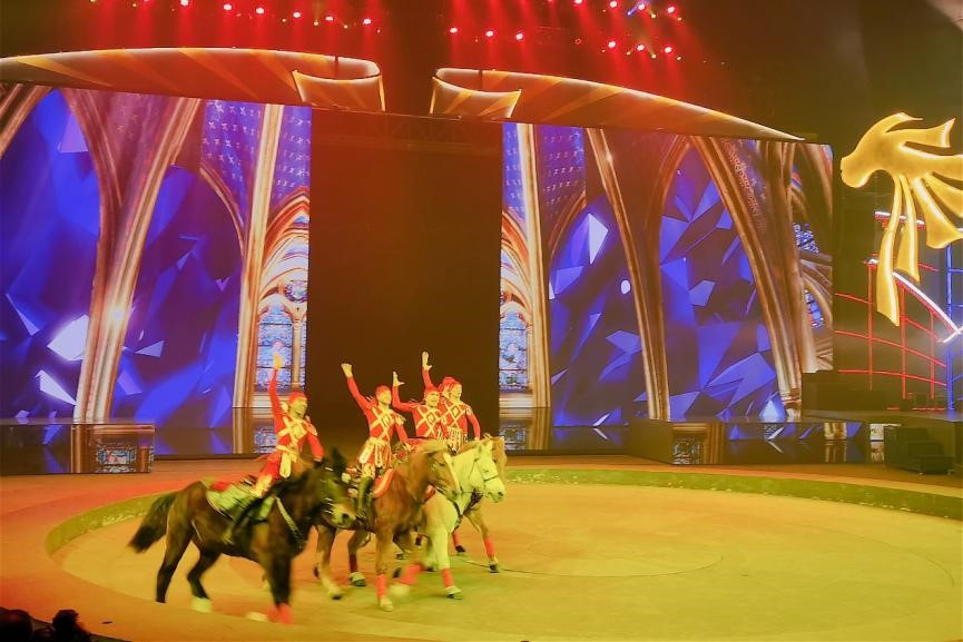 1号剧院内的大型室内实景演艺《舞马传奇》,是一个关于冰族与火族的传说,威亚、喷火、骑马、舞美,各种震撼元素轮番上阵。可爱的马上马朵、搞怪的小丑、还有活力十足的歌舞青春,以及精彩魔术等等,室外玩累了,马街内的演艺节目绝对让您大呼精彩。