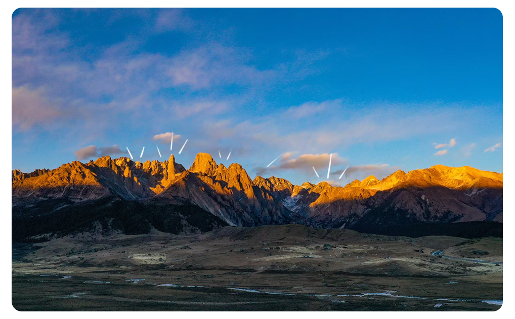 天时,神山衬着下午的阳光熠熠生辉