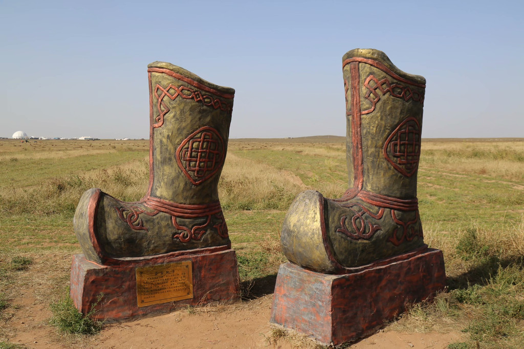 10月9日来到鄂尔多斯杭锦旗,占地16000亩的鄂尔多斯草原,就位于“骑射之地、游牧之乡”。首先进入眼帘的,是威严壮观的苏鲁锭。苏鲁锭又译为苏勒德,蒙语意思是“矛”,是蒙古的象征,战神的标志。一般黑白两色,黑色象征着战争与力量,白色代表着和平和权威。据说铁木真出生时,手中握着一块胎血,瓣开后发现是一个两头尖尖的菱形图案。后人说成成吉思汗手握苏鲁锭出世,是上苍派来拯救蒙古民族的英雄。