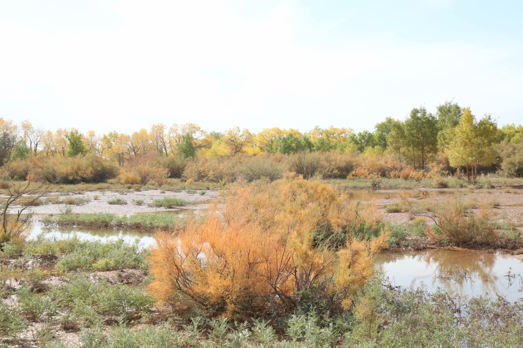时隔一年多,再来内蒙古时,正是仲秋时节。大地已经有了寒意,草原慢慢腿去了青翠,燥热也渐渐消散,阿拉善、巴彦淖尔、鄂尔多斯、敕勒川,所经之地,一眼看不到边际的原野,换上的是绿中带黄,黄中夹杂着红的奇妙景色,就像上帝打翻了颜料盘,五彩斑斓。