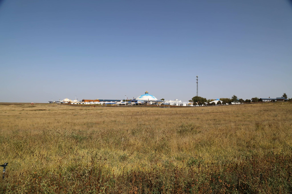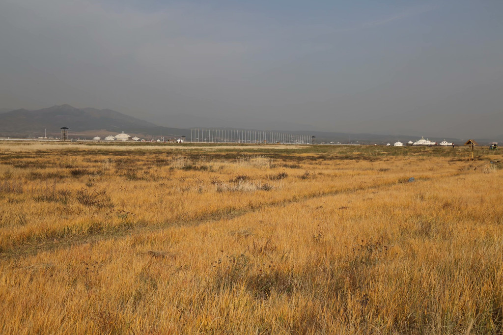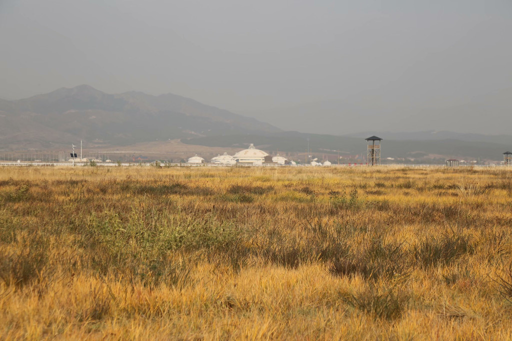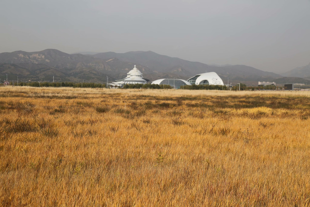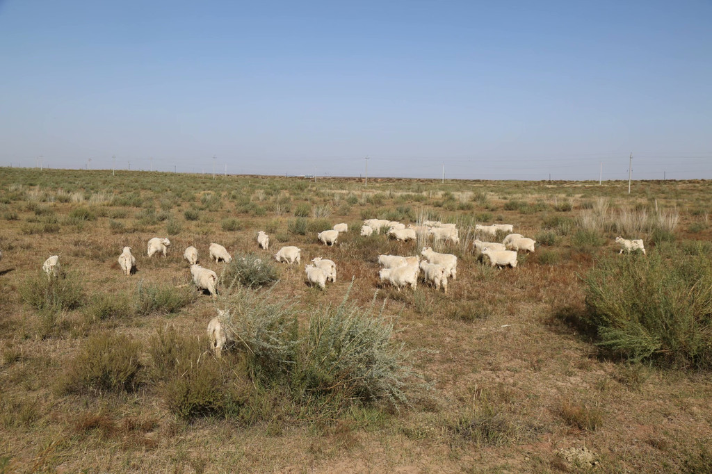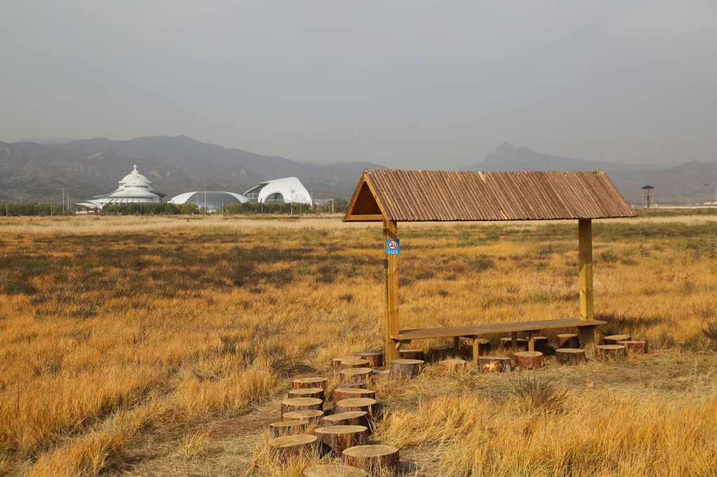 敕勒川是宁甘蒙之行的最后一站,是司导羽丰送给我的告别礼。南北朝时就有一首敕勒歌,“敕勒川,阴山下,天似穹庐,笼盖四野。天苍苍,野茫茫。风吹草低见牛羊。”10月10日下午来到敕勒川草原时,天空幽暗,牧草泛黄,没有了诗中蔚蓝的天空一望无际,碧绿的原野茫茫不尽的胜景。
