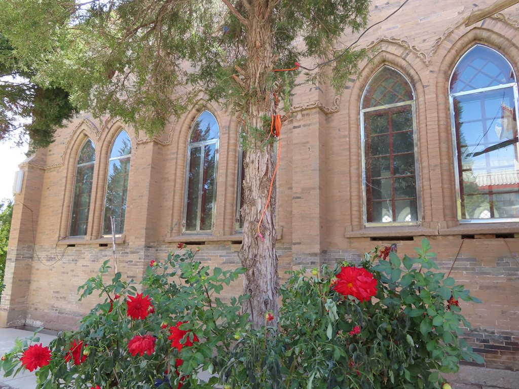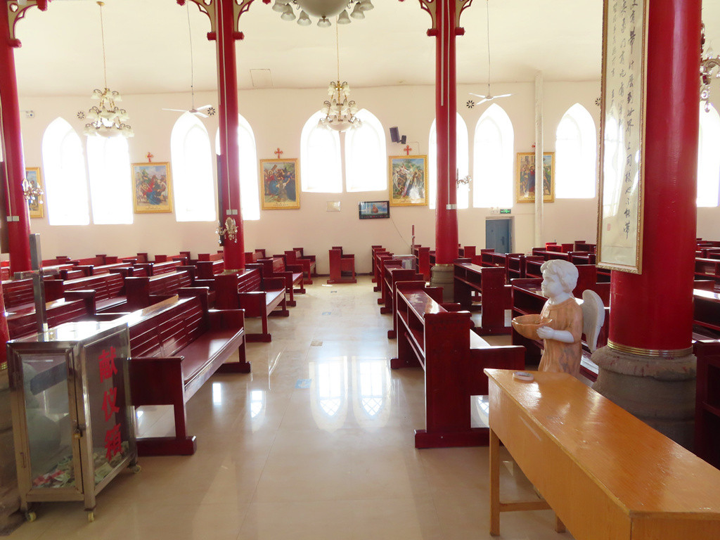 我们首先来看三盛公天主教堂。实话说这个教堂并不起眼,但它是河套地区最早建成的天主教堂,也是西北地区最大的天主教堂。教堂为法国天主教神父德玉明所建,1888年动工兴建,1893年落成,距今已经100多年了。1980年后,教堂经过修缮,重新使用。教堂的建筑风格既吸收了西洋哥特式的风格,又富有中国地方民族特色,融中西建筑艺术为一体。