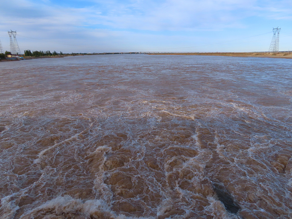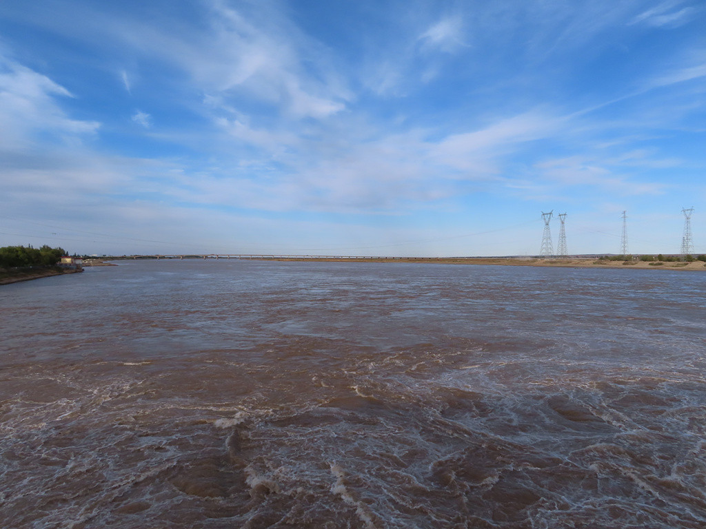 黄河水因为还没有进入黄土高原,还不太浑浊,也不太汹涌,却大气磅礴,尤其在水闸处,让人想起黄河大合唱中雄壮的乐曲。黄河是中华民族的母亲河。