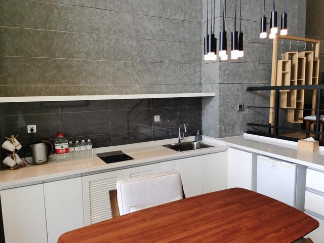 房间里每日会赠送瓶装水,还有一大桶农夫山泉,还有一听啤酒,三听各式的饮料。我们全程都是用的矿泉水,喝水煮面煮鸡蛋煮饺子.......园区里有食堂吃饭很方便,但既然住了公寓,还是想感受一下自己煮个东西的感受,厨房灶台上的电磁炉是不许使用的,所以,带个小面锅,和烧水壶,是想体验者的可选。