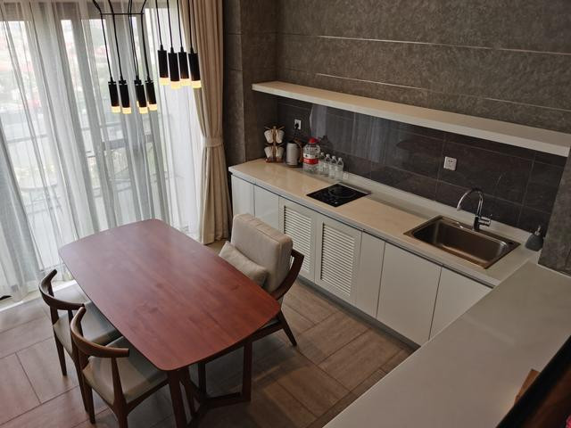 我们三大一小,选择住的隐庐酒店,这个时期性价比很合适,之前不太能接受公寓民宿,只能接受酒店的服务卫生标准,一开始还很担心,入住后,确实不错,算是公寓式酒店了,服务和卫生还有硬软件都可以达到四星以上标准,风格与细节也是我喜欢的。餐厅,大卧室都有阳台,可以看到大海,步行到海边也就五分钟吧。楼下就是小的儿童乐园,有一站园区的巴士站。