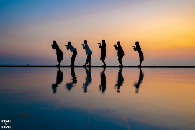 搞怪合照:姿势可以统一一致的夸张动作,或者每个动作都不一样,分散高低交错等,表情表现出“我是一个没有感情的杀手”就可以