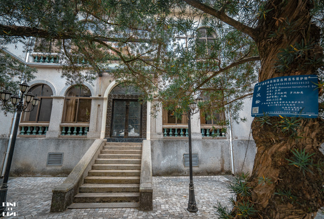 法国领事馆和德国及英国领事馆相比,保存的就没有那么好了,建筑应该是经历过翻修和改造的,沿着地图找来的时候,没想到会变成了这样,崇左龙州的法领馆被围起来做了景区,而北海的法领馆却。。。和别的领事馆一样,门口种有两棵百年的罗汉松。看来也是建筑落成时种下的树。