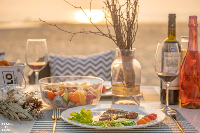 夕阳西下的时候女主角被骗来了,壮丽璀璨的夕阳就照耀在辽阔的海面上,真是一番醉人的美景。倒上一杯红酒或来瓶冰冻啤酒,幸福美好的生活时光不过如此。