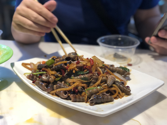在步行街上,整条街基本都是海鲜店,唯独这家生意特别火爆,晚上八点半到还需要取号等位。环境略喧闹嘈杂,服务员态度蛮好,就是忙得应接不暇偶尔会招呼不到位,价格比较实惠。至于口味只能说或许比较适合游客,因为第二天吃过当地人推荐的老伙计海鲜大排档,经对比,老伙计更盛一筹。