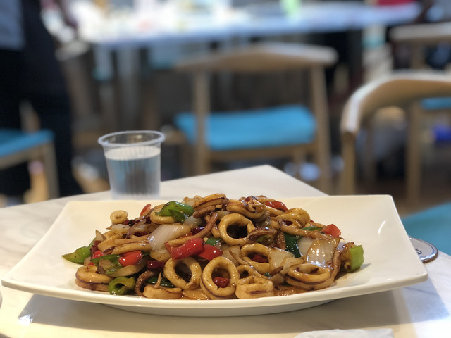 海鲜也算新鲜,以川菜口味烹饪的海鲜,有的海鲜会有点辣,口味倒也是很不错。晚上到访,饥肠辘辘,光顾着吃,吃完才发现没有拍照,匆匆来一张算是留个纪念。