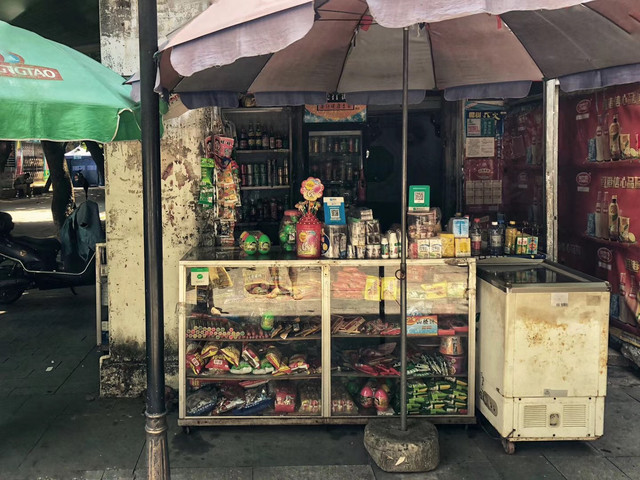 位于湛江赤坎老城区,沿着大同路走进步行街,苍劲的法国梧桐与墙体斑驳的骑楼相映,浓荫下的街边是古玩地摊,两边的店铺多是古玩店,散发着岁月的味道。