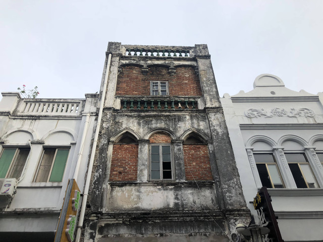 老街建筑大多为二至三层,临街两边墙面的窗顶多为卷拱结构,卷拱外沿及窗柱顶端都有雕饰线,线条流畅、工艺精美。这些建筑临街的部分,既是道路向两侧的扩展,又是铺面向外部的延伸,人们行走在老楼下,既可遮风挡雨,又可躲避烈日。