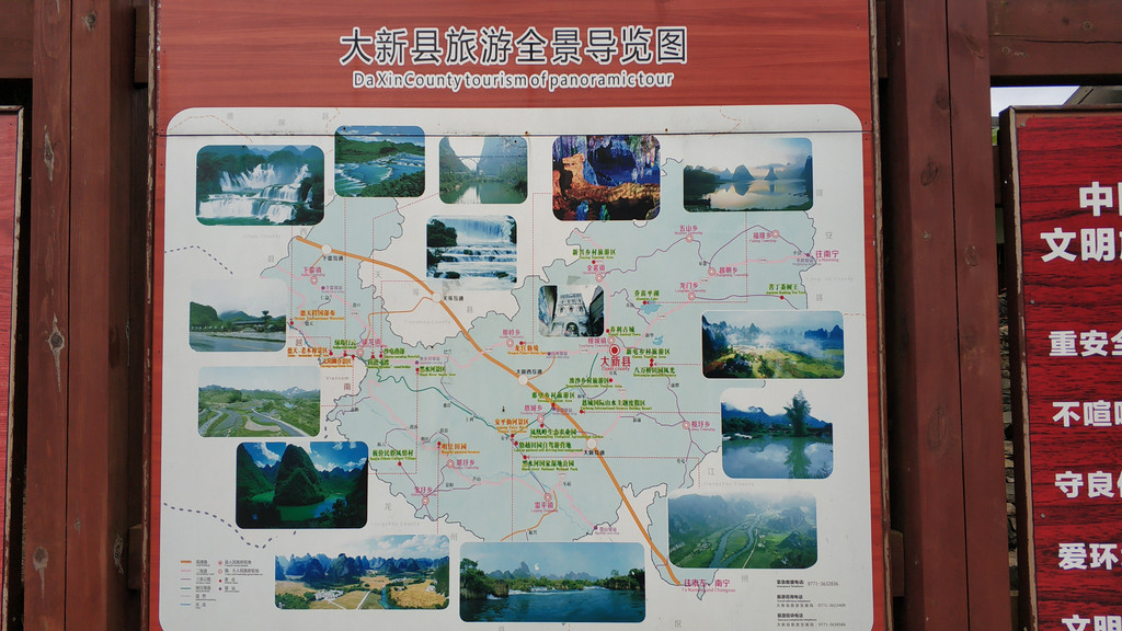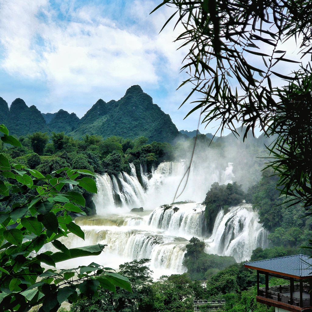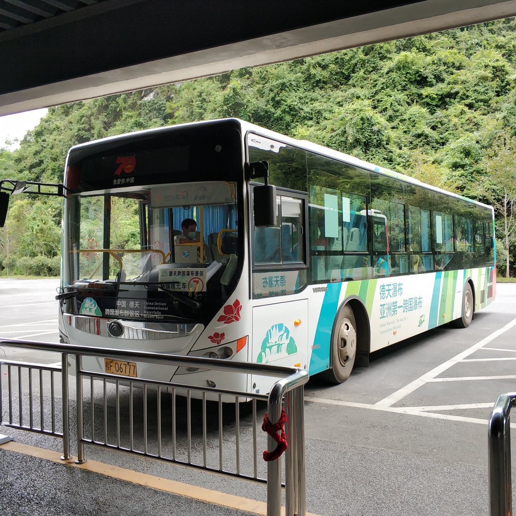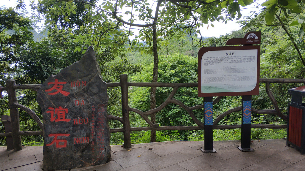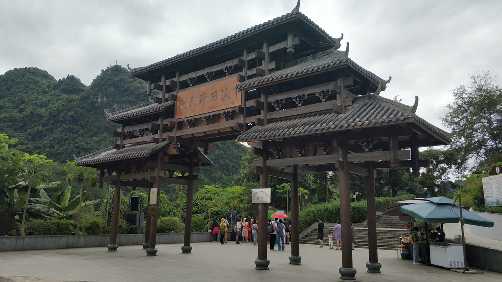 德天景区还在建设中,后半段的中越合作交流区域还没开放,清朝的53界碑也关闭了。从景区大门还要坐一个景区大巴(35元/人),才能到瀑布脚下,路挺长的,靠走要走很久,游览主要路线就是先从靠近瀑布的一侧一路而上,近距离接触瀑布,要带伞,如果想靠近瀑布会被淋湿,到三级观瀑台后就是还在建设中的德天寺旁边的广场,绕过广场沿观景道走,一级二级观景台被树挡着看不到什么,三级四季可以看,五级观景台视野最好,可以看到板约瀑布和德天大瀑布,前面还有个全景观景台没有开放。出口处会路过购物店,卖越南橡胶拖着和西贡咖啡的,不贵。德天景区的酒店都比较潮湿