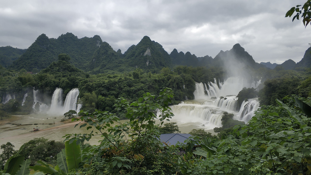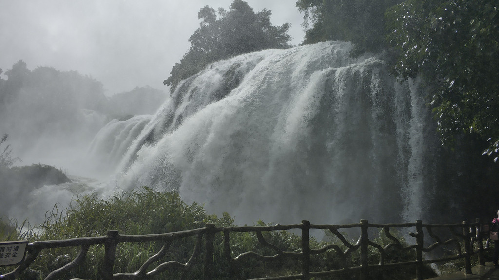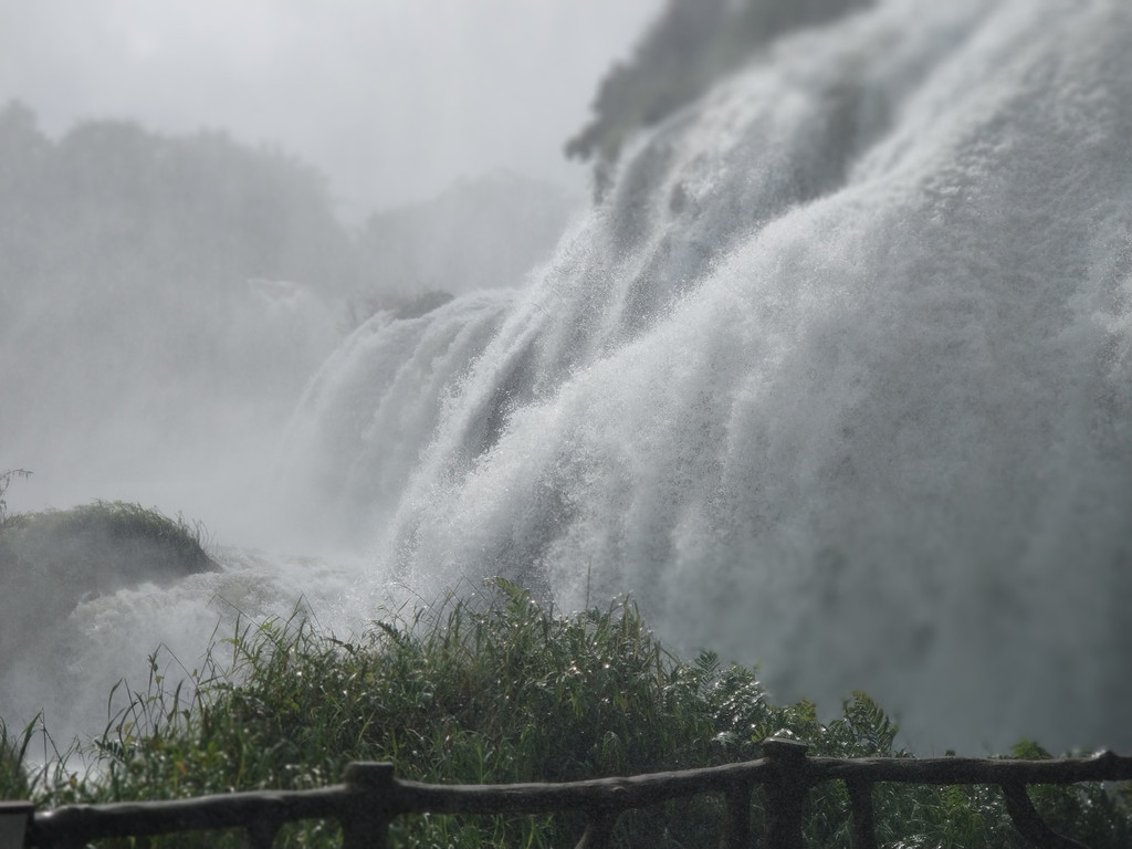德天大瀑布离明仕田园不远,水不大的时候也可以坐竹筏,美其名曰跨国游哈哈,因为归春河另一边就是越南,在河上可以看到越南姑娘在河边拍照,越南那边的板约瀑布也可以一起看到,越来越靠近瀑布,就会感觉迎面有水打在身上,丰水期很壮观