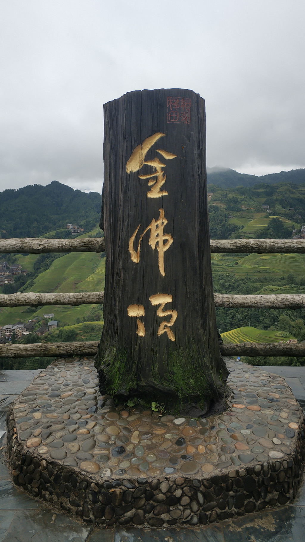 金佛顶应该算是龙脊景区海拔最高,最有名的一个观景点,索道上去金佛顶后,要看天气,可能有雾气的话就看不清下面的梯田,但等等或许雾会散,确实比较壮观,适合拍全景。我们9月底去的,梯田才黄了三分之一,预计十月中旬是最佳观赏时间。