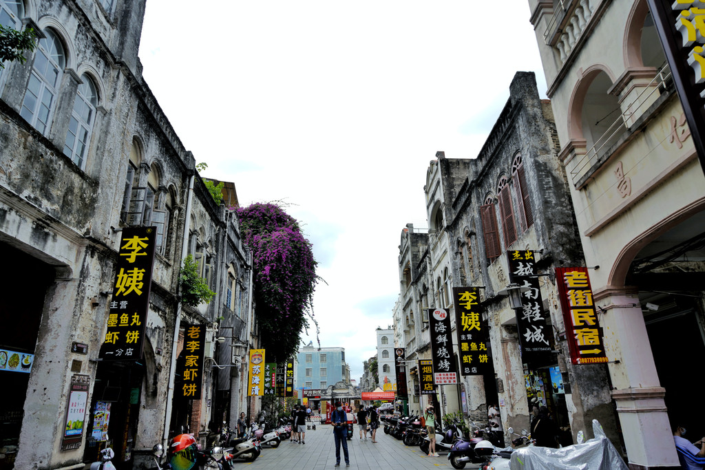 北海老街建于清代道光年间,街道骑楼林立,楼下是极接地气的各种传统小店,特色小吃、疍家服饰、南珠首饰、越南美食……,处处充满市井生活的人情味。