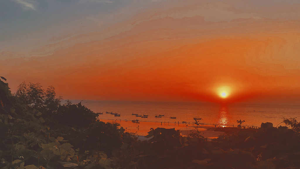日落余晖,晚霞洋洋洒洒点缀于蔚蓝海岸,是哪个画家都无法羡慕的色彩配比,面对如此风光只能感叹于自己江郎才尽。随着日落西沉,我们开启了下一站,涠洲岛最热闹的集市——南湾街。